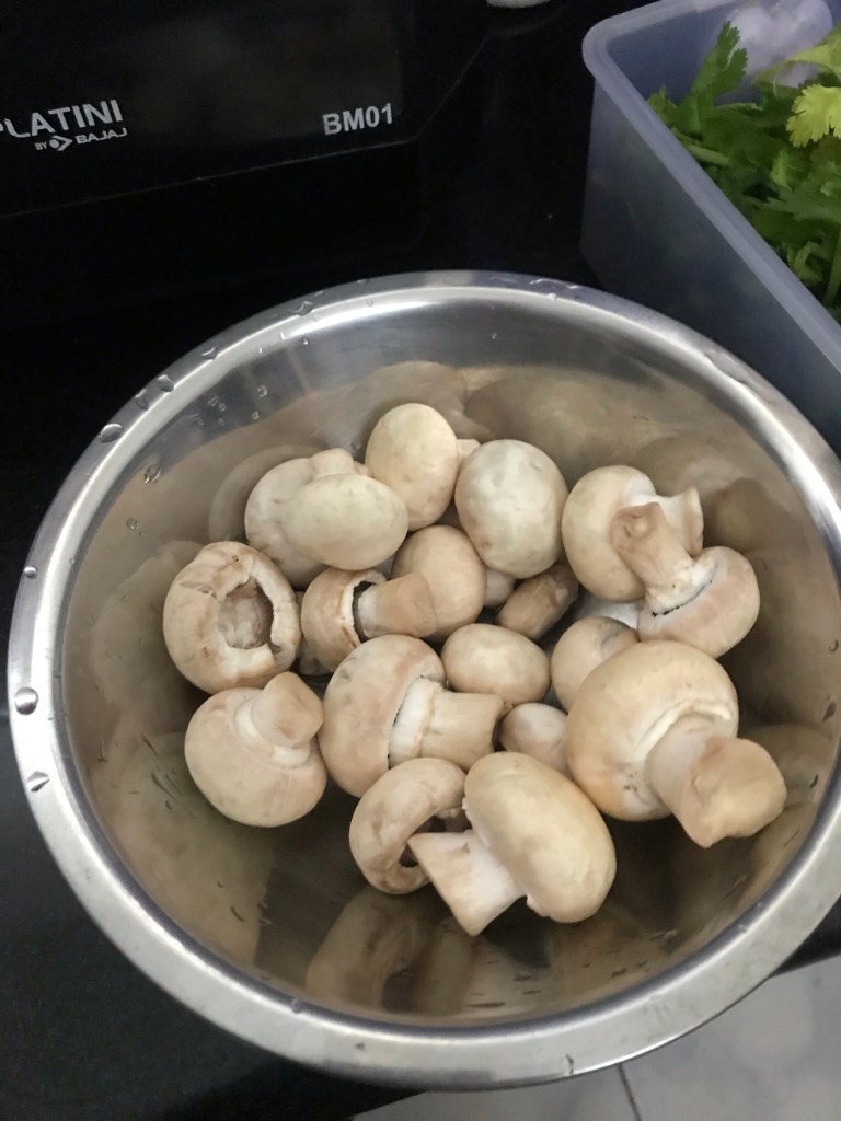 Add the cream and let the bubbles appear. Keep stirring. Switch off the heat.