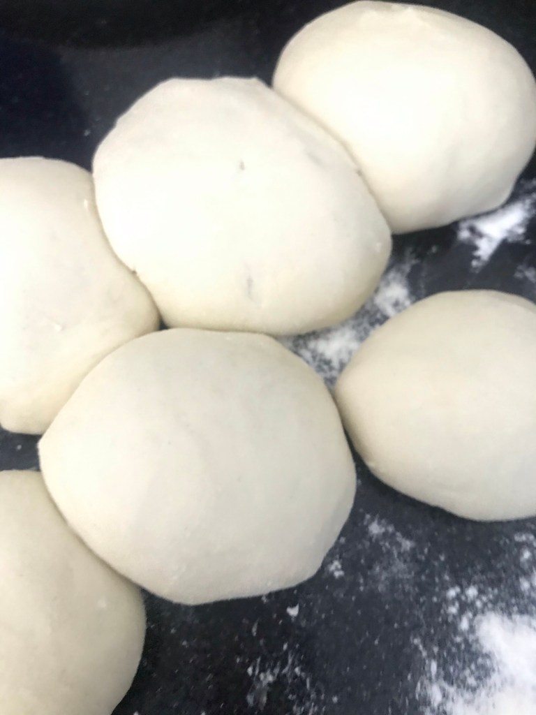 Once the dough cycle is over, take the dough out and knead it for 10 minutes on a lightly floured surface. Make 12 dough balls.