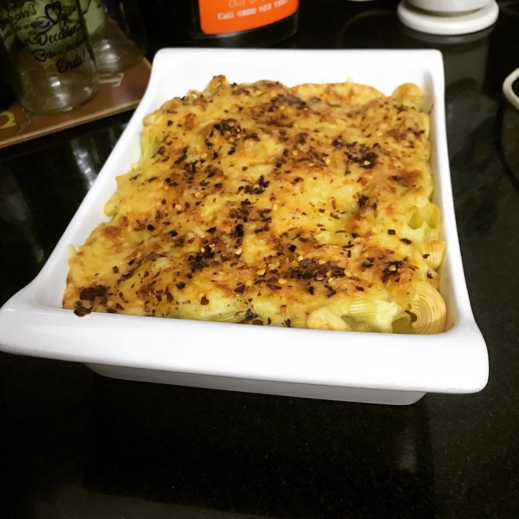 A comfort food and a favourite with my son throughout his schooldays was Mac and cheese. I used to make it three or four times a week. I use sharp English mustard and chilli flakes, which impart a unique flavour to the dish.