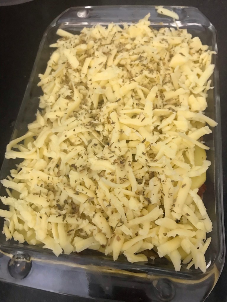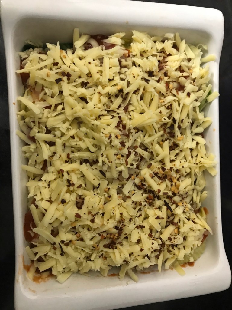 Repeat the layers again. Finish with a thick layer of cheese.