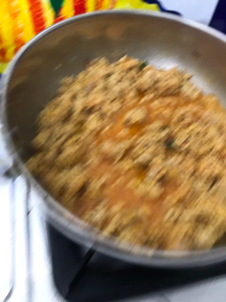 Add the washed and drained chicken mince and cook for 2 minutes. Stir to break up any lumps.