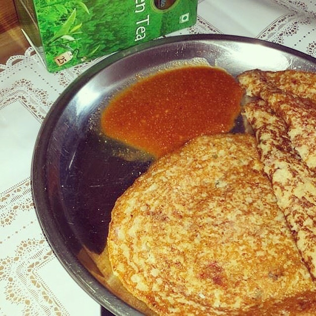 Heat an iron griddle and oil it. Make thin and round dosas.