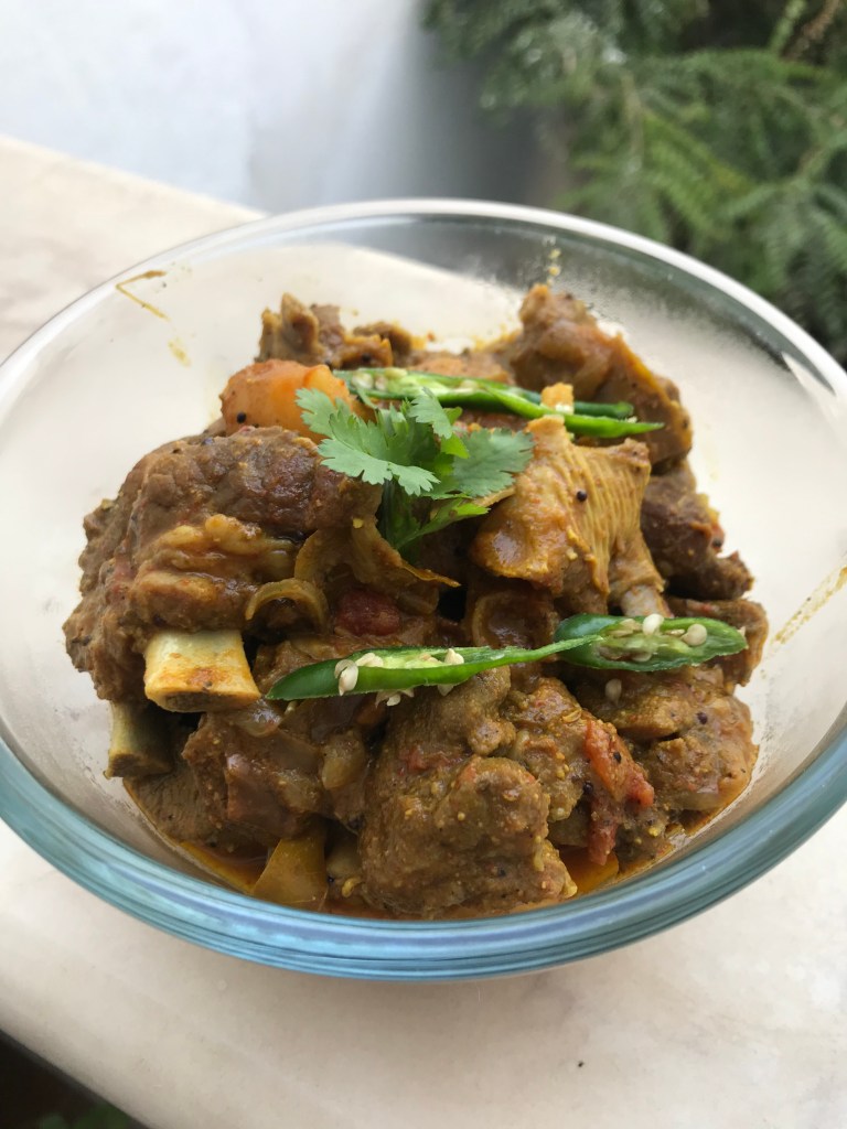 Add the olive oil and butter in that order to a heated pan. I use a wide and deep pan in which I can reheat the soup if needed. In this case, I used a pressure cooker as I was making this at a friend’s holiday home in the mountains and it tends to hold temperatures better.