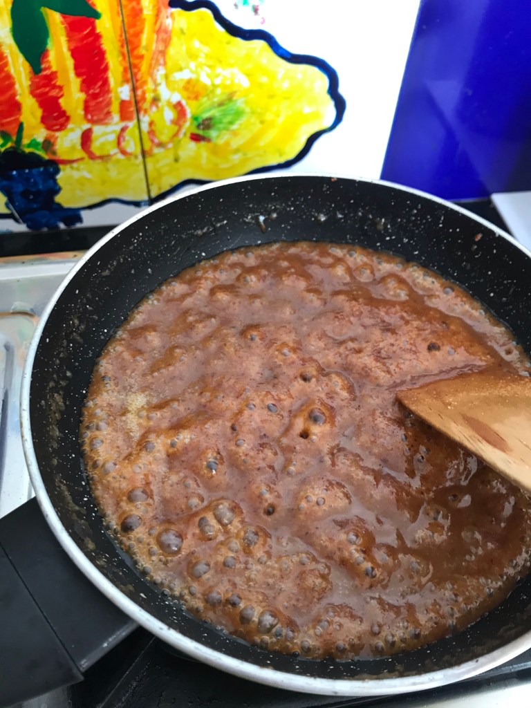 Add some of the bubbling sugar syrup.