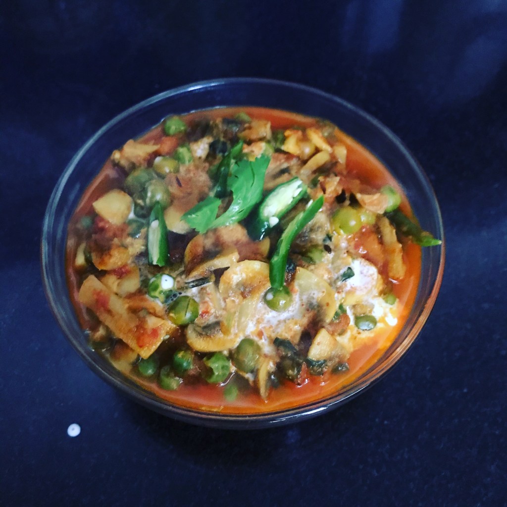 The combination of mushrooms and peas in a delicately flavoured tomato gravy is delicious. This is a dish that I fell in love with when I was a young girl. I loved the version of this curry sold at a restaurant called Chic Fish near my home. I have experimented till I have managed to get the same taste and texture.